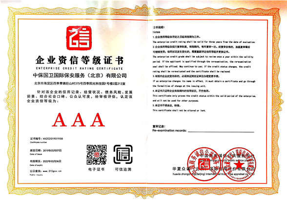 中保國衛(wèi)國際保安服務(wù)(北京)有限公司,屬中保國衛(wèi)集團(tuán)旗下子公司。能全方位的為大型客戶提供優(yōu)質(zhì)的安保、押運(yùn)服務(wù),是集人防和技防于一體的新型正規(guī)化綜合安保押運(yùn)服務(wù)企業(yè),提供人防、物防、技防、聯(lián)網(wǎng)報(bào)*、非武裝押運(yùn)等安防相關(guān)的一站式服務(wù)。 公司在國內(nèi)多省設(shè)立有分公司及分支機(jī)構(gòu),著重提升安全押運(yùn)、智能技術(shù)押運(yùn)及安全技術(shù)防范相關(guān)的服務(wù),業(yè)務(wù)范圍覆蓋全國一、二線城市、港澳地區(qū)以及海外地區(qū)。安保方面主要為政府機(jī)構(gòu)、金融機(jī)構(gòu)、企事業(yè)單位、醫(yī)療衛(wèi)生、高等院校、工業(yè)園區(qū)、大型商場(chǎng)、高檔住宅、智能商務(wù)樓、大型活動(dòng)提供門衛(wèi)、守護(hù)、巡邏、押運(yùn)(非武裝)、安全檢查、保安特勤、私人護(hù)衛(wèi)、消防中控、安全技術(shù)防范、遠(yuǎn)洋護(hù)航等全方位服務(wù),同時(shí)面向國際市場(chǎng),為中資企業(yè)在“一帶一路”沿線國家投資提供境外安保服務(wù)。 >> 更多內(nèi)容 |